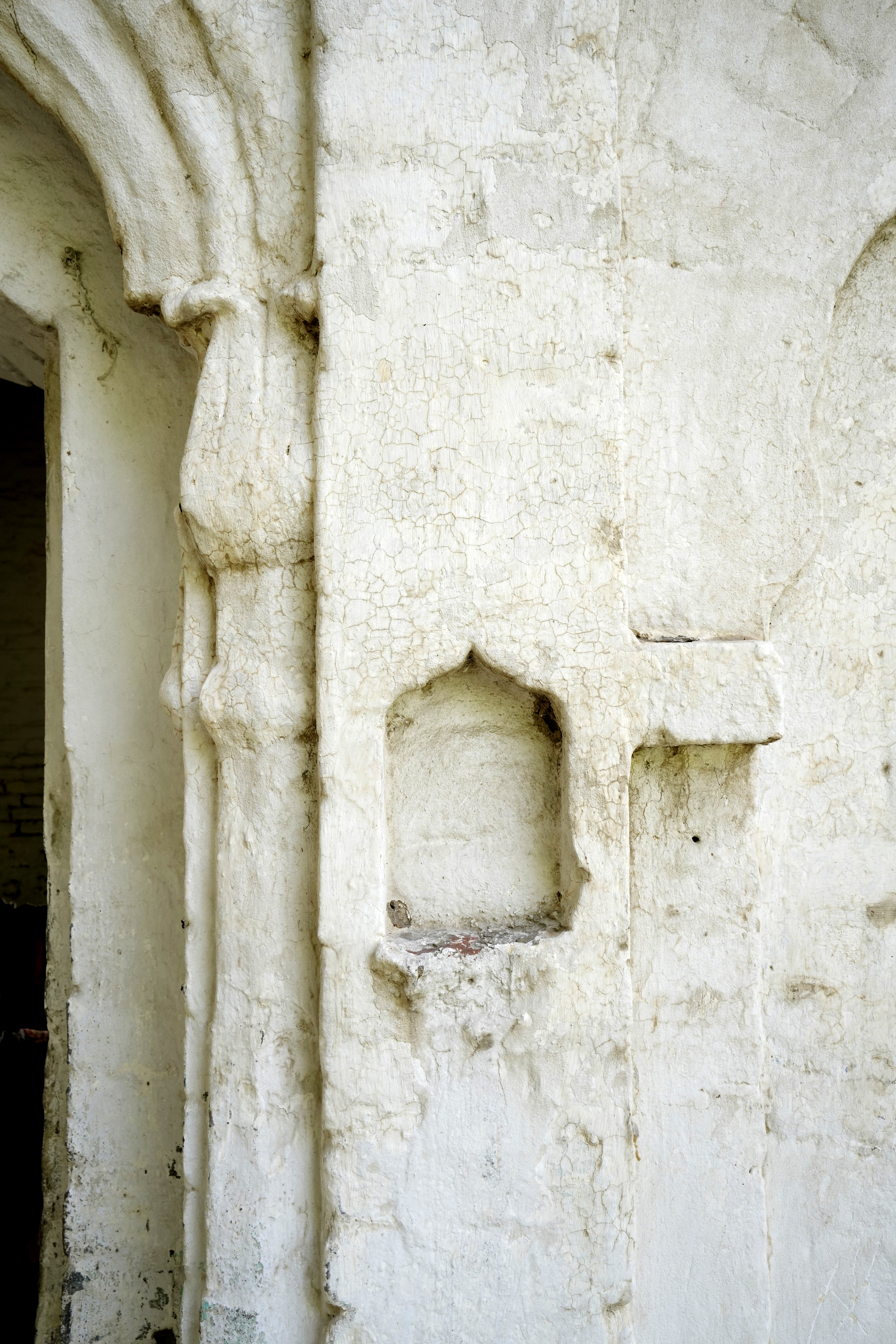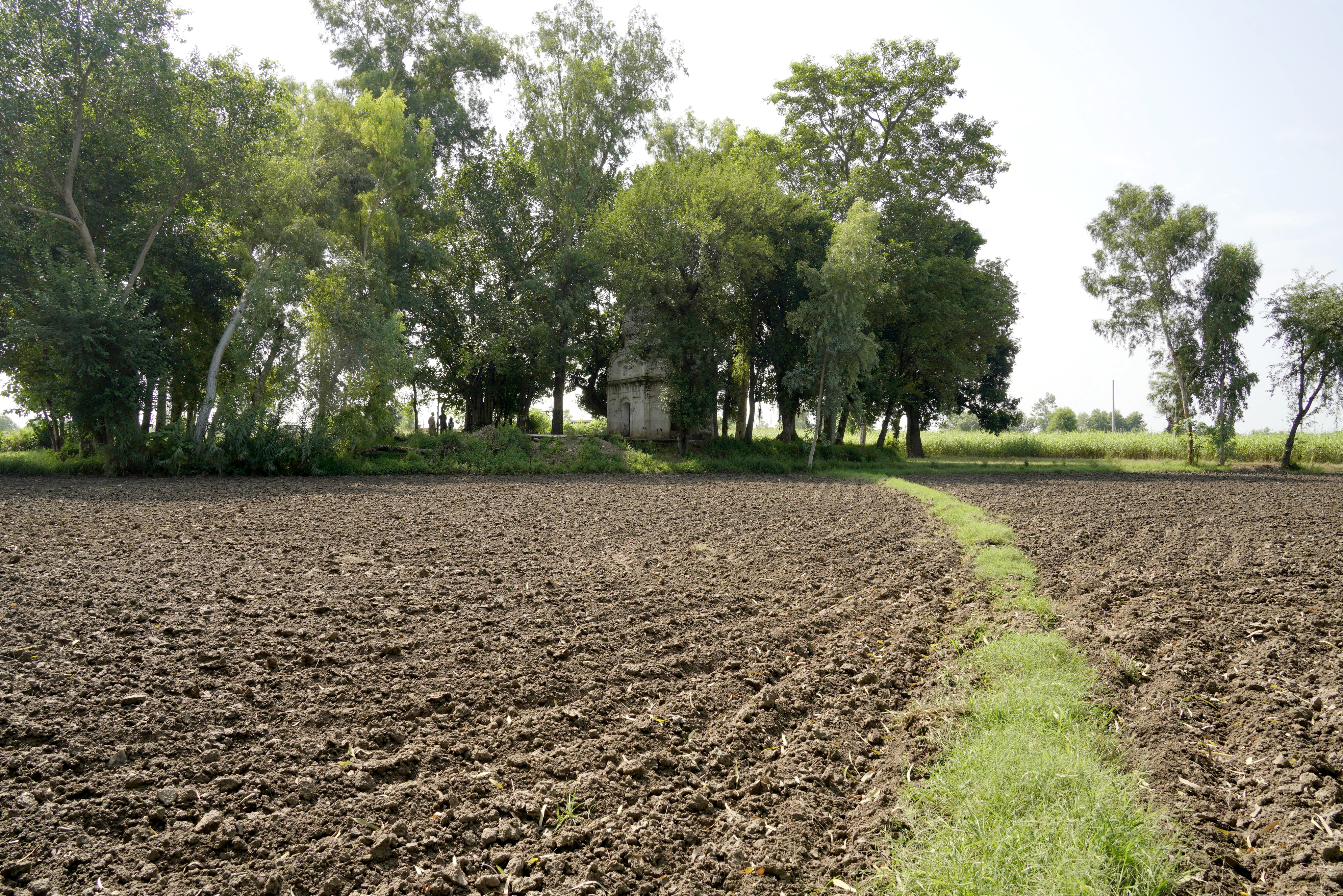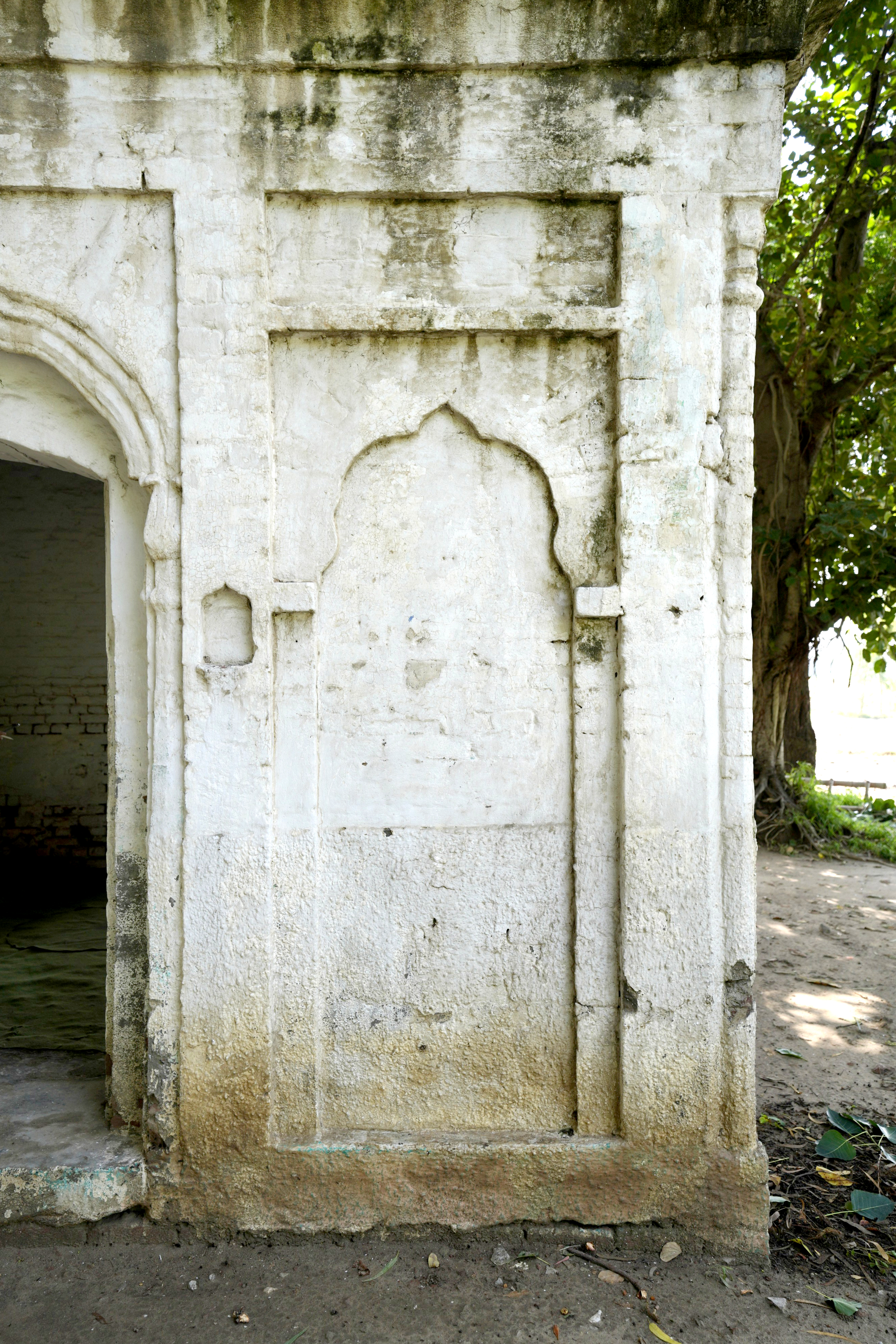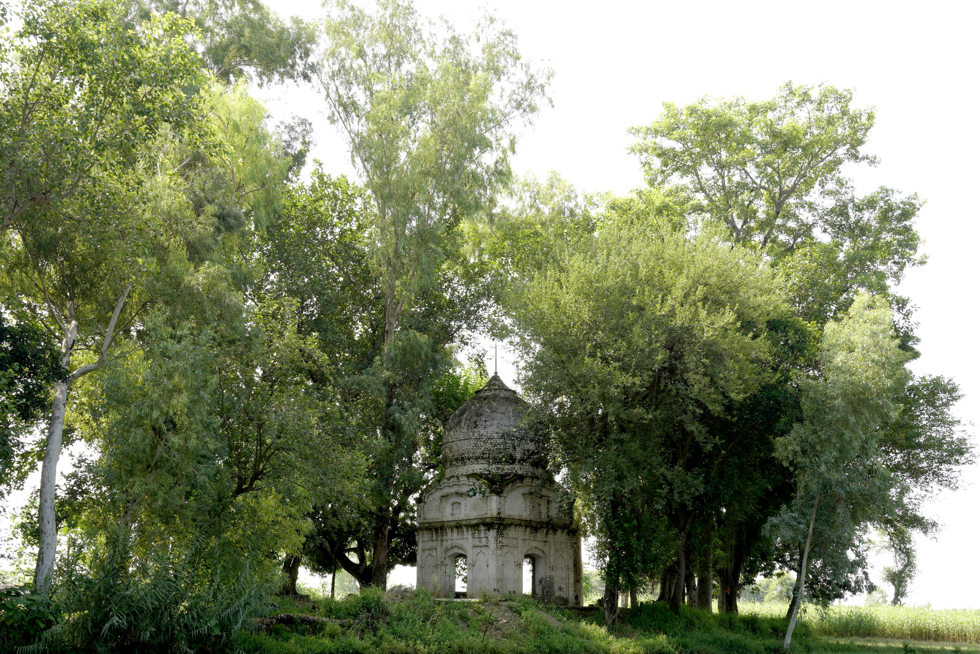 Unlike the elaborately finished and highly ornamental facades typical of other major gurdwaras, Gurdwara Sach Khand appears incomplete, which lends a distinct narrative to its architectural expression. The use of standard-sized bricks (9 x 4.5 x 3 inches) is evident throughout the structure, a detail that aligns with construction practices of the late colonial period. Furthermore, many grooves and shoulders of the arches indicate that the plasterwork, which would have added a layer of refinement and decoration, was never applied. These unfinished elements strongly suggest that the gurdwara was abandoned mid-construction, likely due to the Partition of India in 1947. It is possible that the gurdwara was intended to commemorate a story or event associated with Guru Nanak, but external circumstances halted its completion.